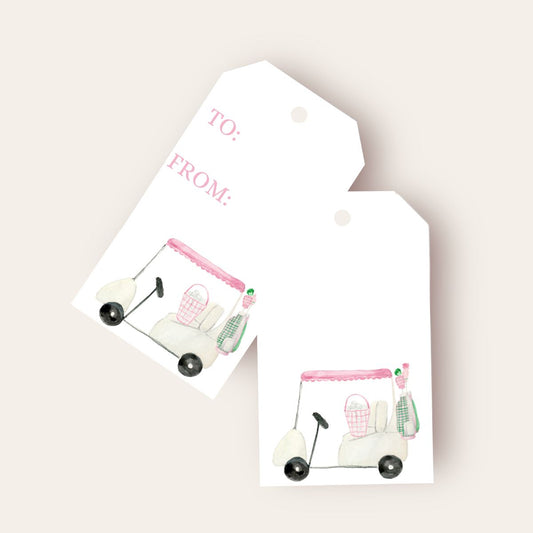 Pink Golf Cart Big Gift Tags