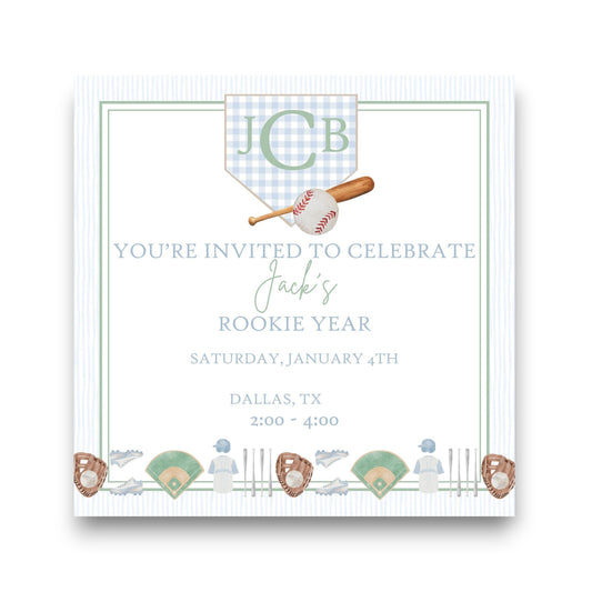 Baby Jack's Rookie Year Square First Birthday Party Invitation
